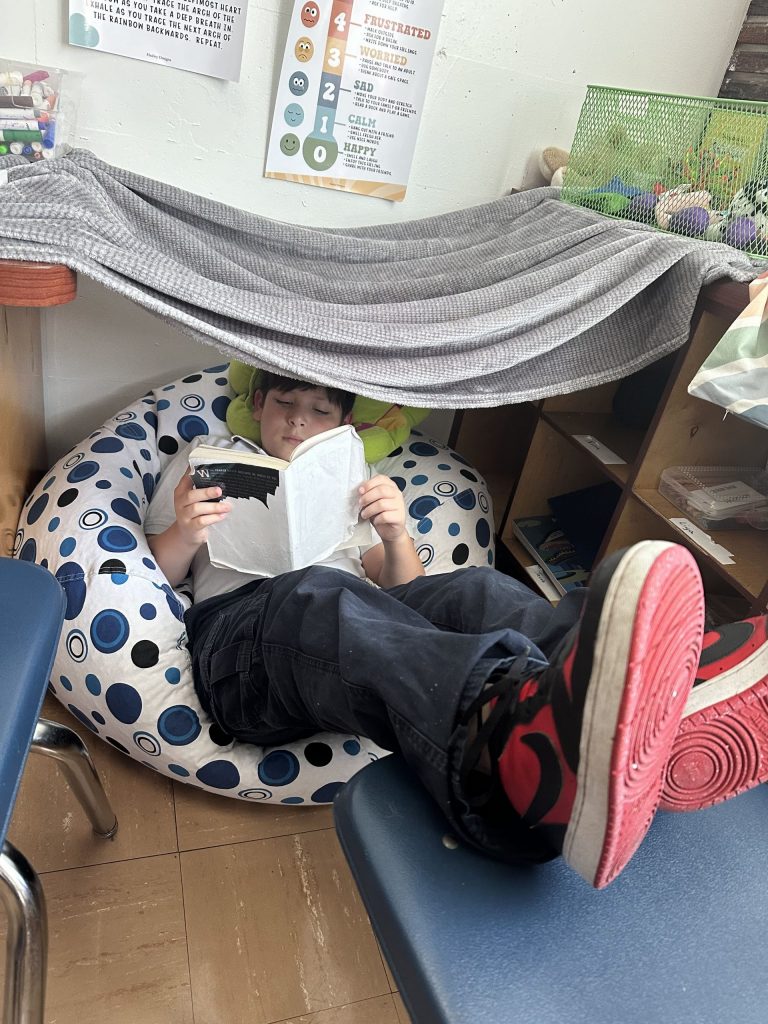 In Ms. Alana Harris’ class, fifth-grade students celebrated D.E.A.R. Day — “Drop Everything and Read!” On this special day, they brought blankets, pillows, stuffed animals, and, of course, their favorite books to share with classmates. D.E.A.R. Day is a great reminder of how fun it is to cozy up with a good book!