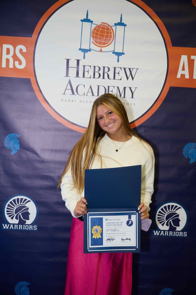 The Rabbi Yossi Heber Awards were presented to seniors Lizzie Ebner and Zach Schuster, recognizing their leadership, sportsmanship, and commitment to athletics throughout their time at Hebrew Academy.